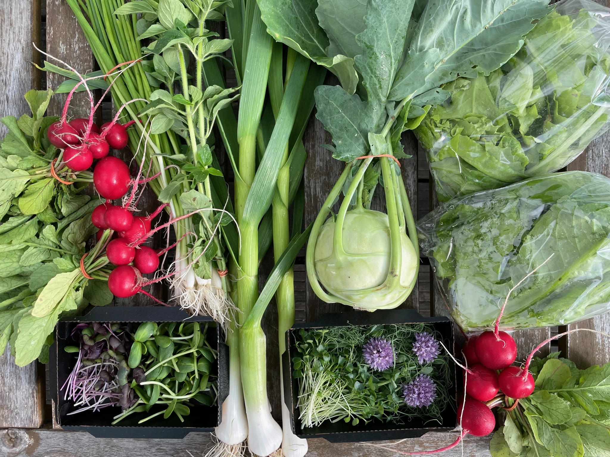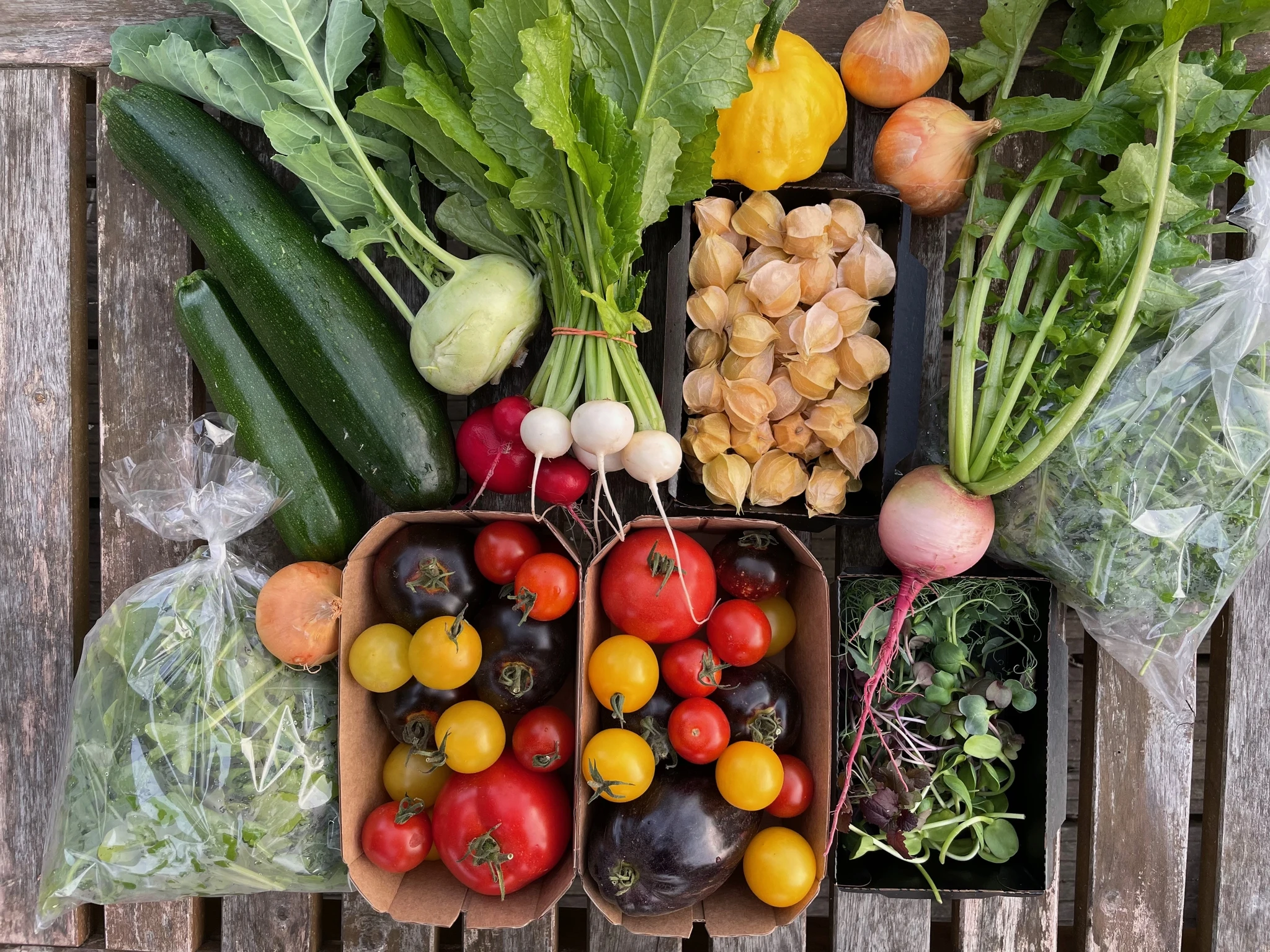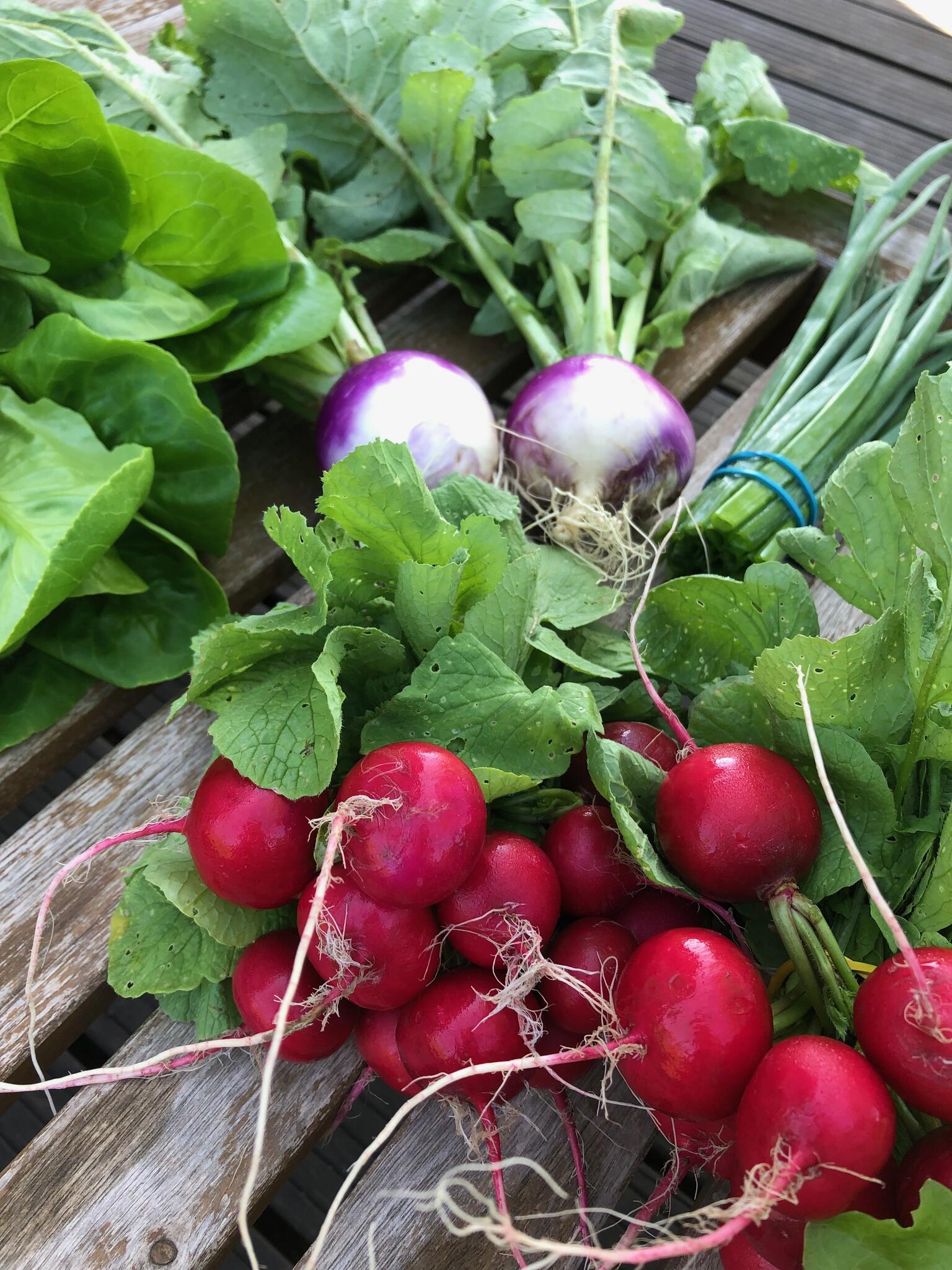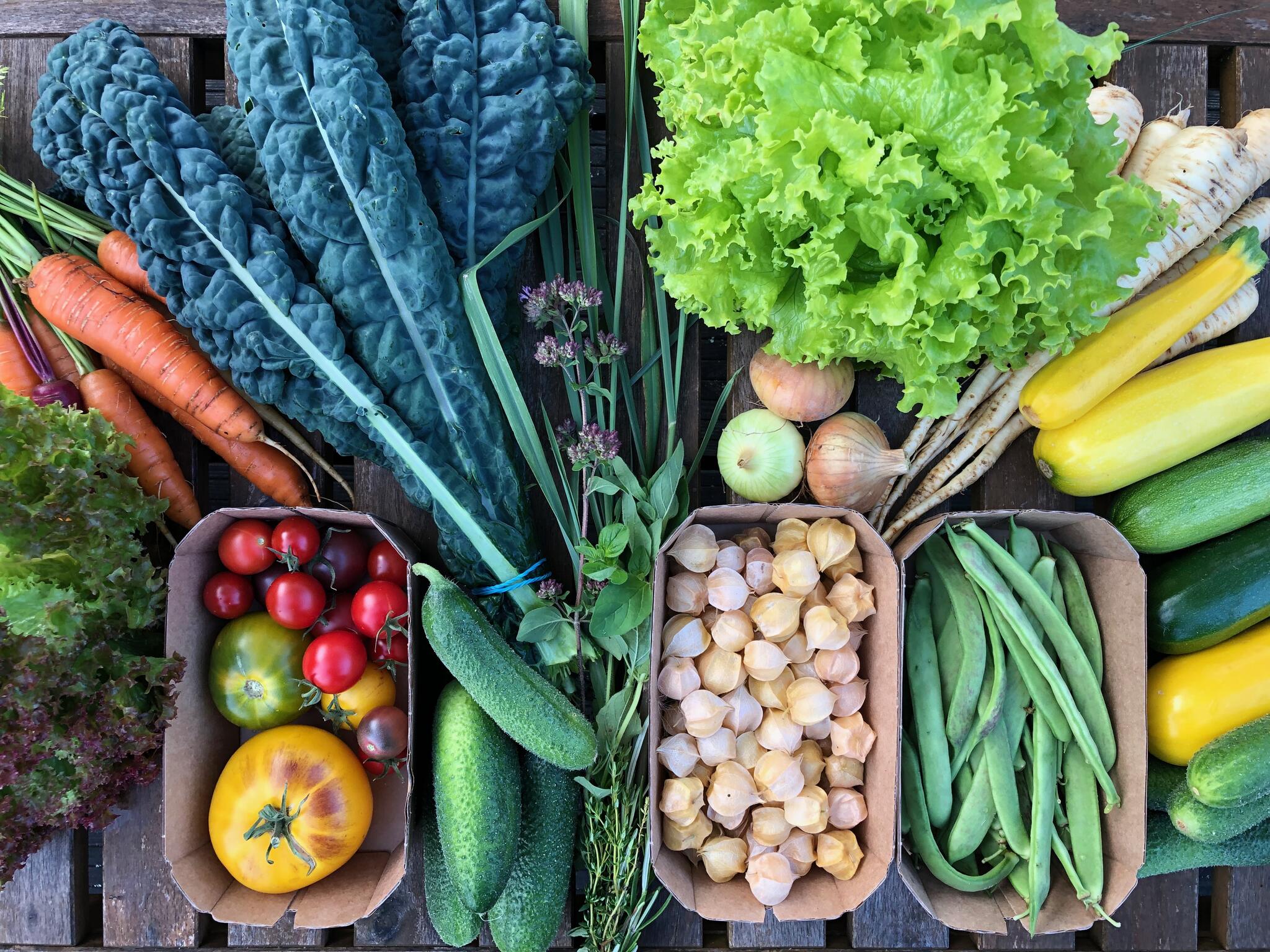Juunist oktoobrini paneme 20 nädala jooksul iga nädal meie suurde ja väiksesse keemiavabalt kasvatatud 8-15 erinevat köögivilja ja maitsetaime, mille toome teile koju või millele saate kohapeale järele tulla.